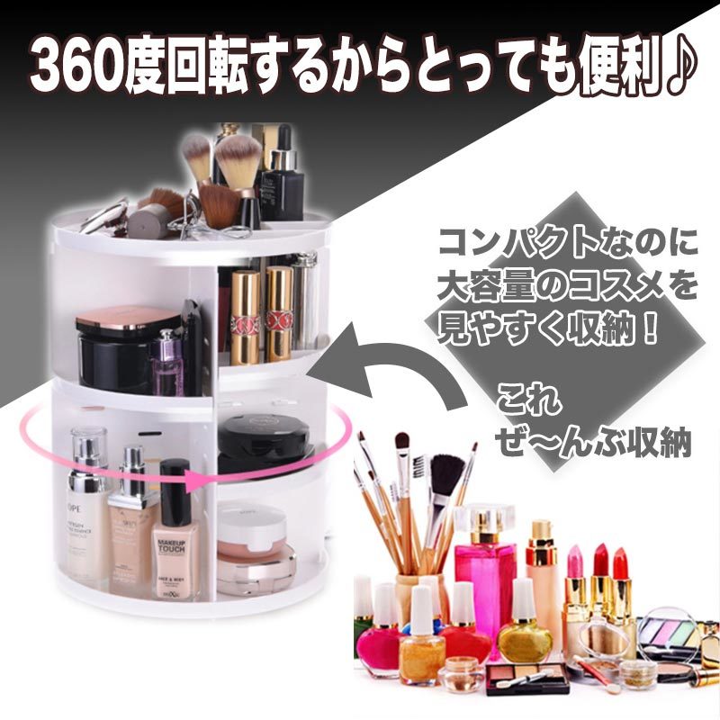 収納 回転 コスメ メイクボックス(コスメボックス) 大 人気 360度天板が回転 収納 化粧 ネイル 調味料 収納 かわいい おしゃれ簡単 ブラック ホワイト ピンク 黒 白 ネイル 大容量 送料無料 回転するので欲しいアイテムがすぐ探せて便利です!コスメボックス(メイクボックス)大容量収納 BOX 【他サイトで好評いただいております】 すでに累計2000個以上の販売実績です!皆様に大変喜んでいただいている商品なので、自信をもってオススメします!化粧水なども収納できて、ドレッサー周りが一気に片付きます。